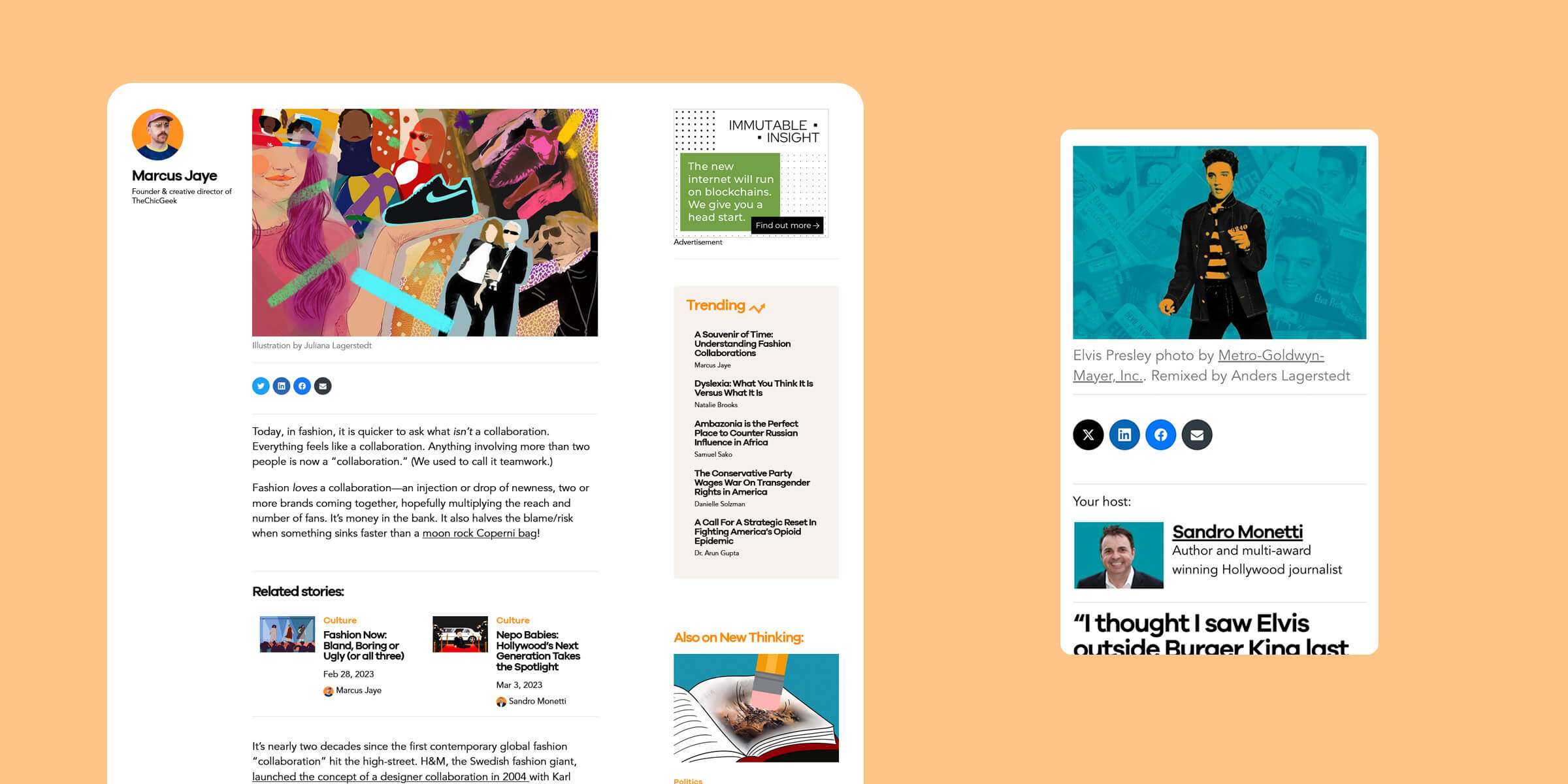Editorial illustrations, Logo design, Social media graphics, UX, Visual identity, Web design & development